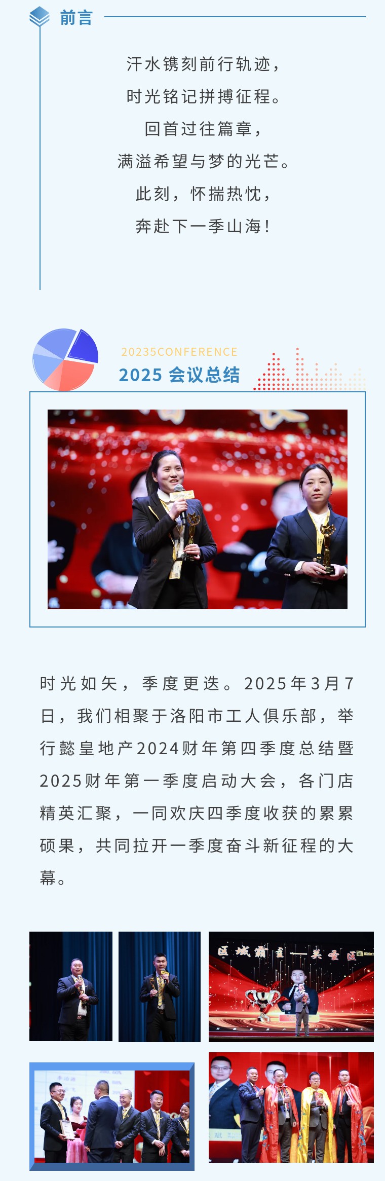 回首第四季度,我們以無畏之姿,披荊斬棘,斬獲了一項項斐然成就,那是全體同仁汗水與智慧的結晶。如今,第一季度大會的集結號已然吹響,讓我們懷揣熱血與豪情,奔赴這場盛會,攜手在新季度中踏浪前行,再創輝煌,向著更高峰奮勇攀登,鐫刻屬于我們的璀璨榮耀!